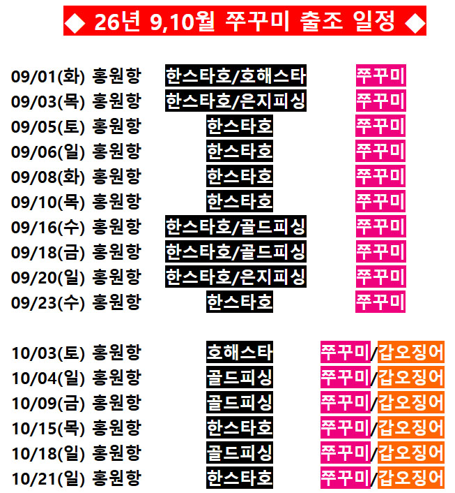◆ 26년 3월 4월 출조일정 ◆